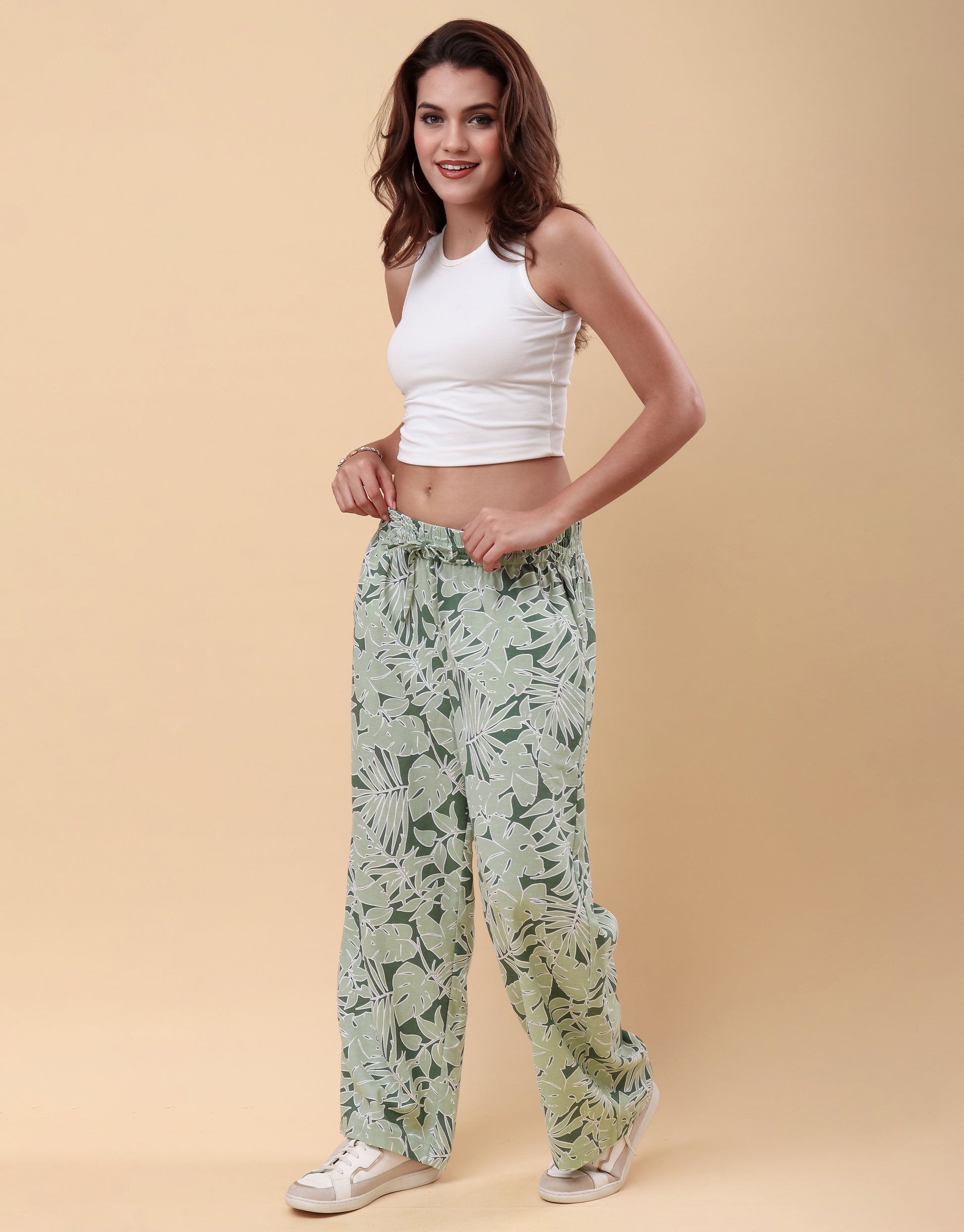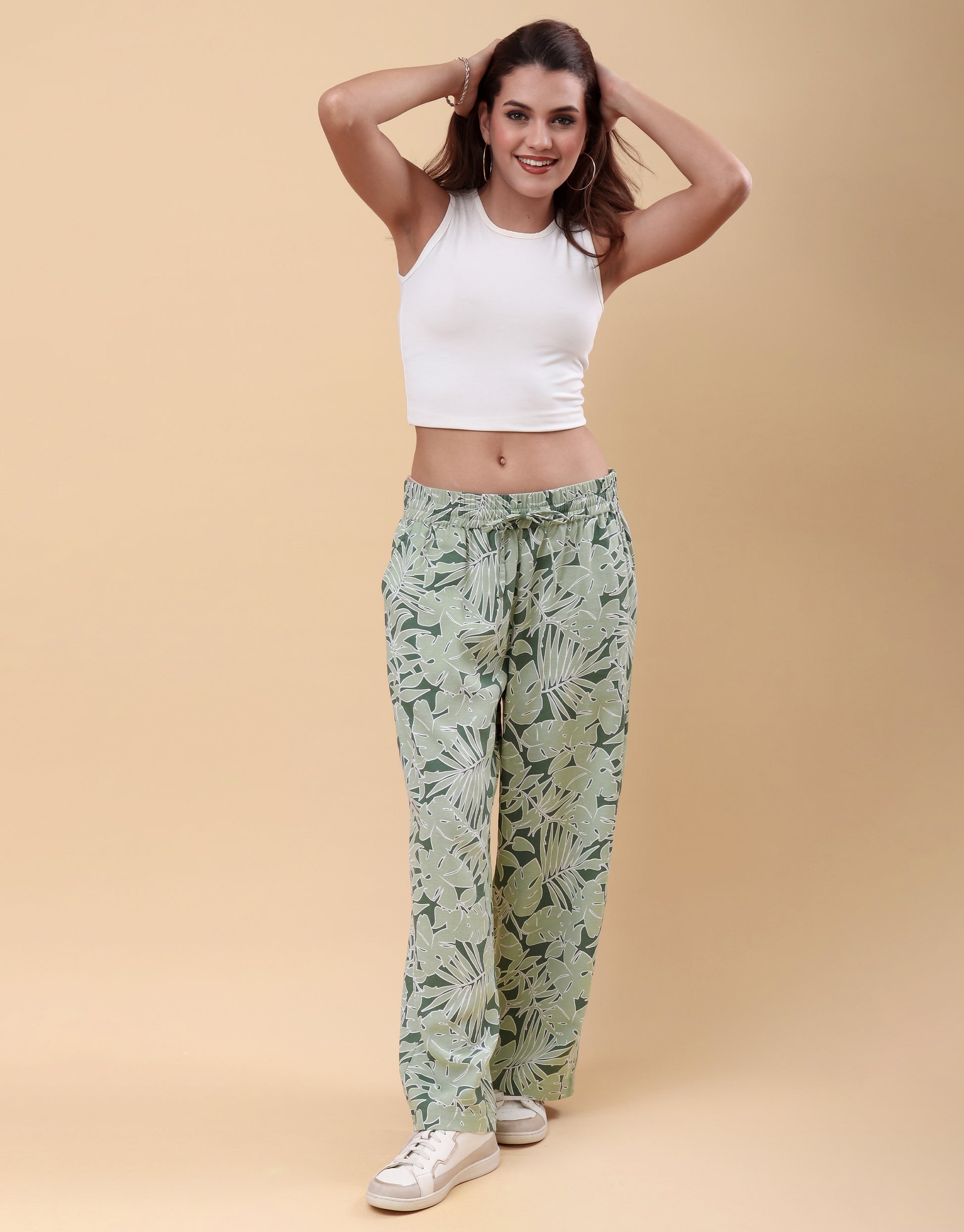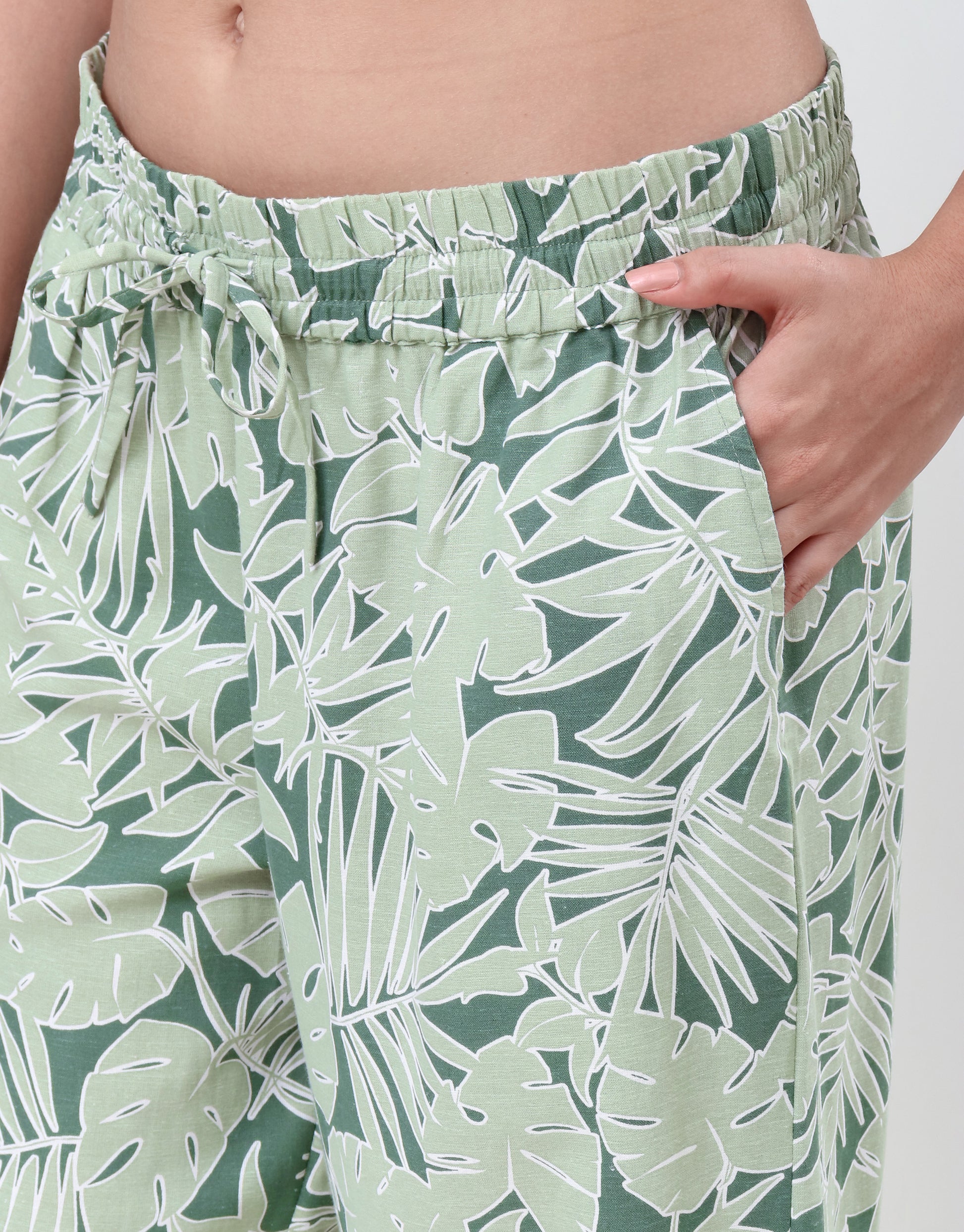 Discover the perfect blend of comfort and style with our "Luxe Comfort Pure Cotton Linen Trousers." These versatile trousers are crafted from 100% premium cotton linen, offering exceptional breathability and a soft, lightweight feel that's perfect for all-day wear. The relaxed, wide-leg silhouette provides a modern, on-trend look, while the elasticized drawstring waist ensures a comfortable and adjustable fit. Constructed in a soft green color with forest print, these trousers are a wardrobe essential that can be effortlessly paired with a simple tee for a casual day out or dressed up with a blouse for a more polished ensemble. Elevate your everyday style with these must-have, pure cotton pants.