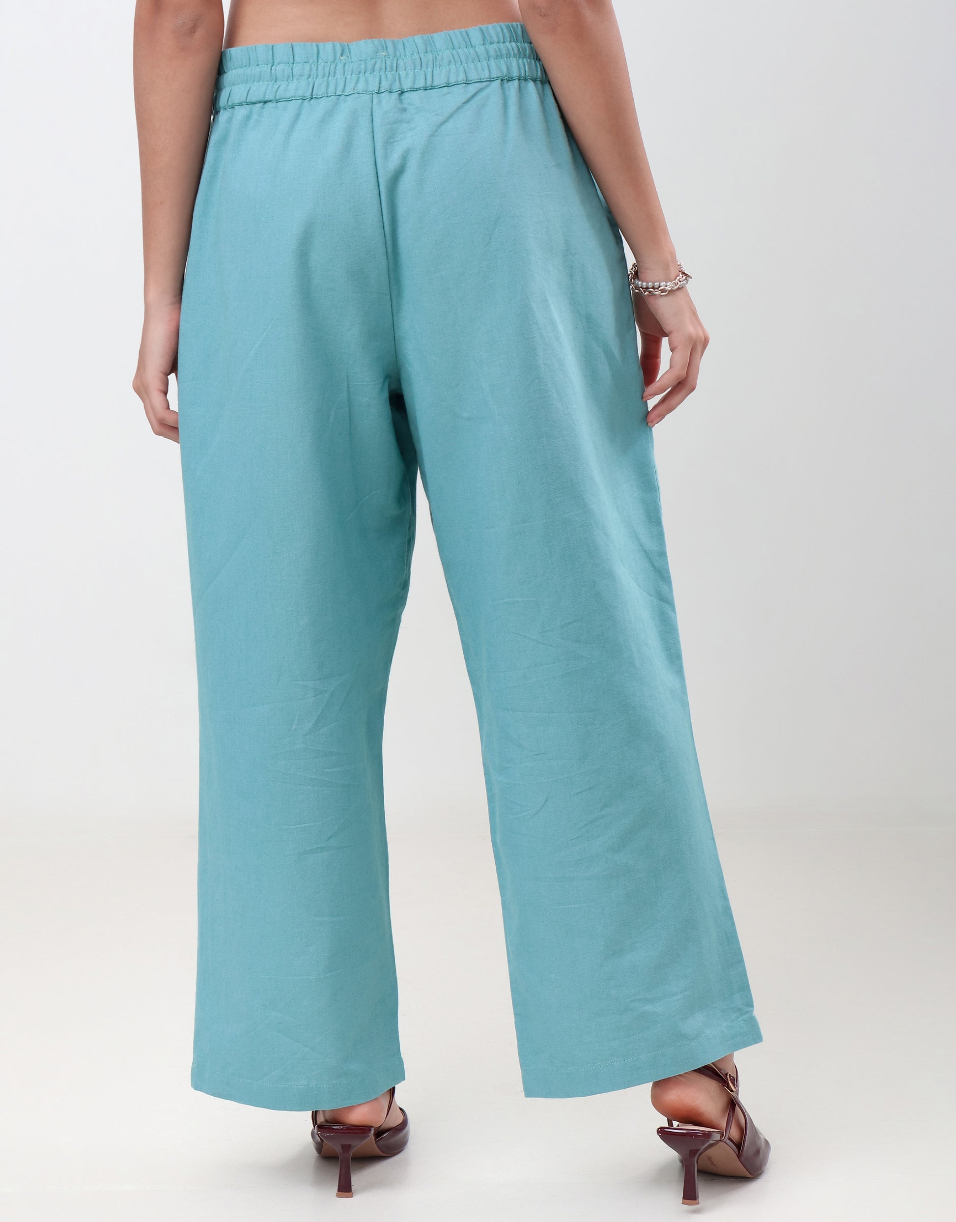 Discover the perfect blend of comfort and style with our "Luxe Comfort Pure Cotton Trousers." These versatile trousers are crafted from 100% premium cotton, offering exceptional breathability and a soft, lightweight feel that's perfect for all-day wear. The relaxed, wide-leg silhouette provides a modern, on-trend look, while the elasticized drawstring waist ensures a comfortable and adjustable fit. Constructed in a soft teal color, these trousers are a wardrobe essential that can be effortlessly paired with a simple tee for a casual day out or dressed up with a blouse for a more polished ensemble. Elevate your everyday style with these must-have, pure cotton pants.