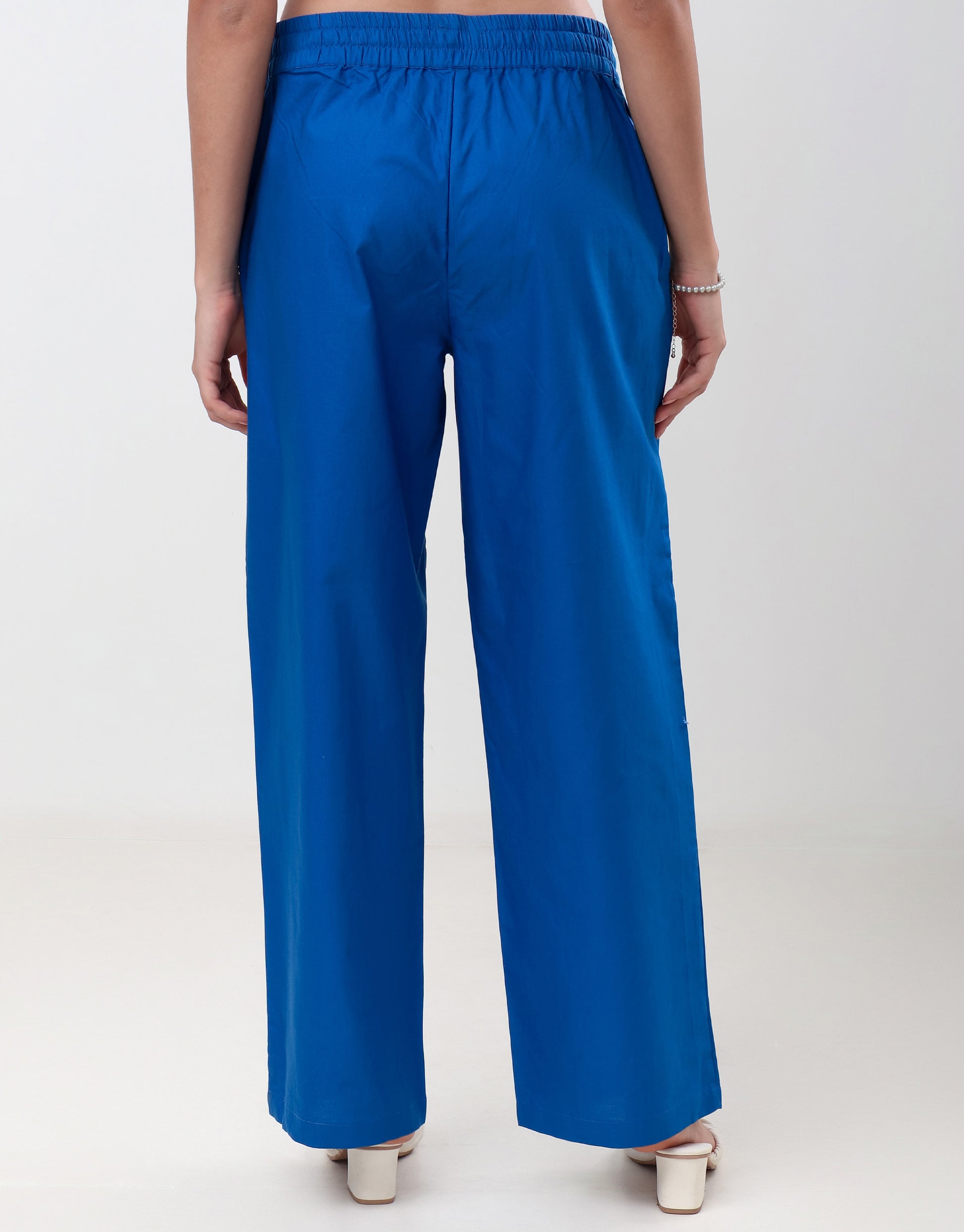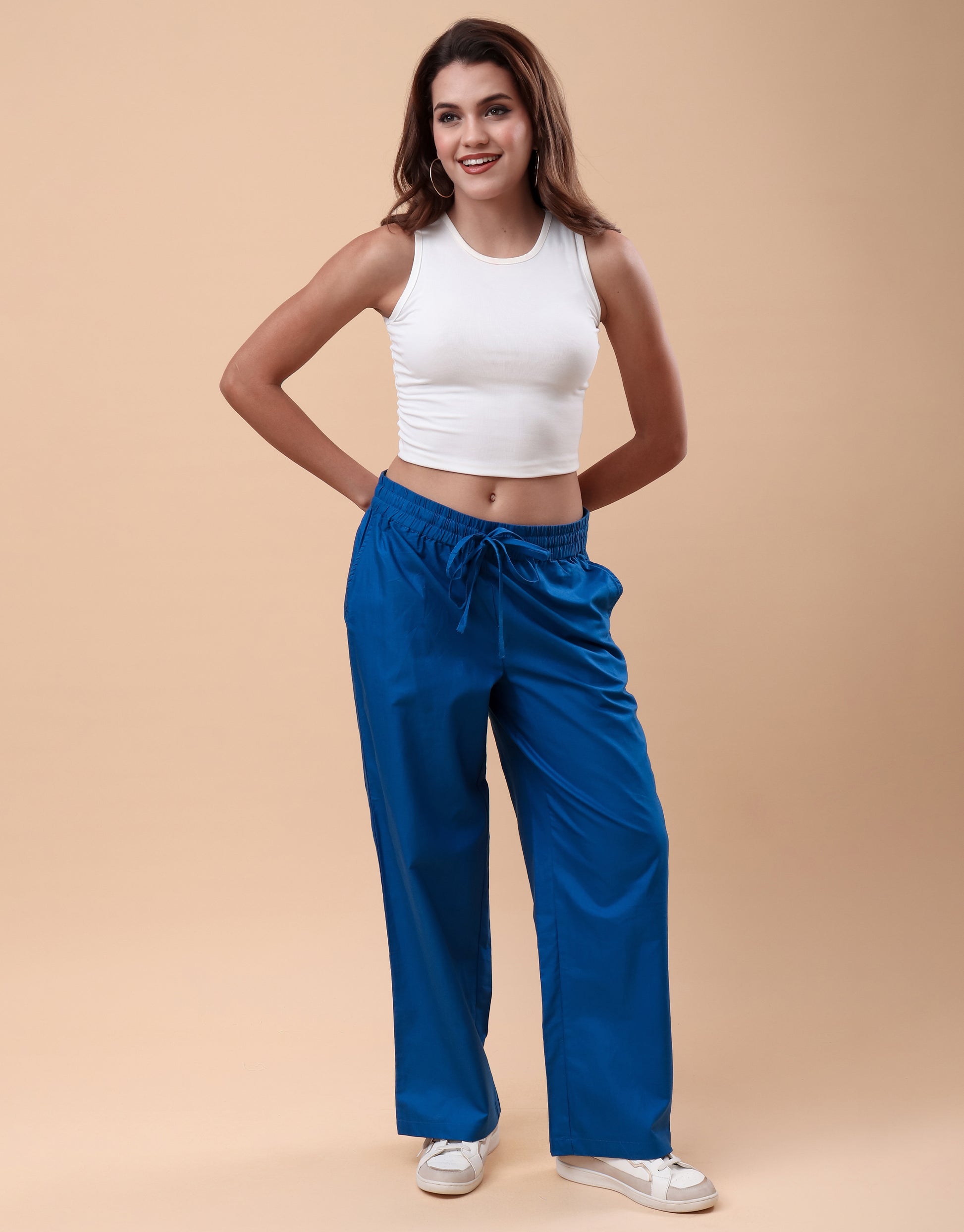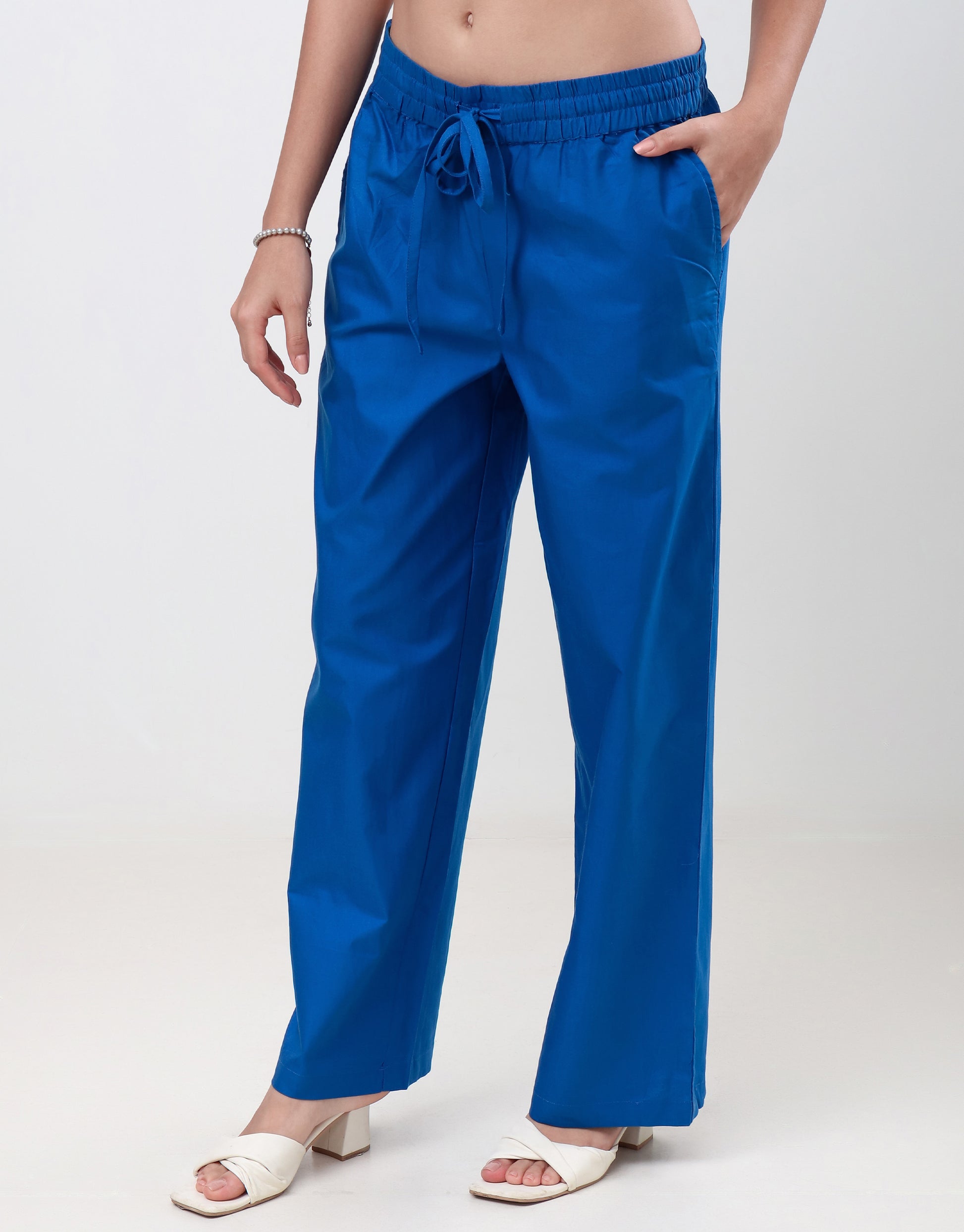 Discover the perfect blend of comfort and style with our "Luxe Comfort Pure Cotton Trousers." These versatile trousers are crafted from 100% premium cotton, offering exceptional breathability and a soft, lightweight feel that's perfect for all-day wear. The relaxed, wide-leg silhouette provides a modern, on-trend look, while the elasticized drawstring waist ensures a comfortable and adjustable fit. Constructed in a versatile blue color, these trousers are a wardrobe essential that can be effortlessly paired with a simple tee for a casual day out or dressed up with a blouse for a more polished ensemble. Elevate your everyday style with these must-have, pure cotton pants.